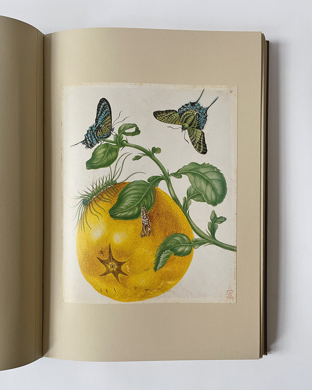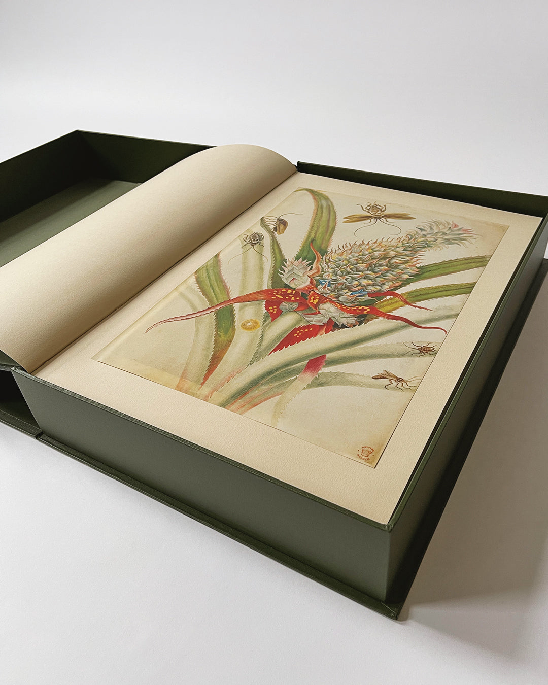 Zustand: Sehr gut. Aus der Sammlung Maria Sibylla Merian im British Museum mit exklusiver Folio-Einführung von Julie Harvey von der Entomologischen Bibliothek des Naturhistorischen Museums. Viertelgebunden in feinstes nigerianisches Ziegenleder. Gold- und Silberprägung nach einem Entwurf von David Eccles. Solanderbox mit Buckram-Einband. 91 Seiten. 91 handgeklebte Faksimile-Drucke. 51,4 x 45,7 cm. Komplett mit drei zusätzlichen Tafeln in Originalausgabe. Die Solanderbox selbst ist ein Buckram-Einband, der den wertvollen Einband vor Staub, Licht und anderen Beschädigungen schützt und gleichzeitig einen einfachen Zugriff auf das Album ermöglicht. Ein stabiles Innenfach hält den darunterliegenden Kommentarband. Dieser ist in grünes Leinen gebunden und auf hochwertigem, weißem Büttenpapier gedruckt.