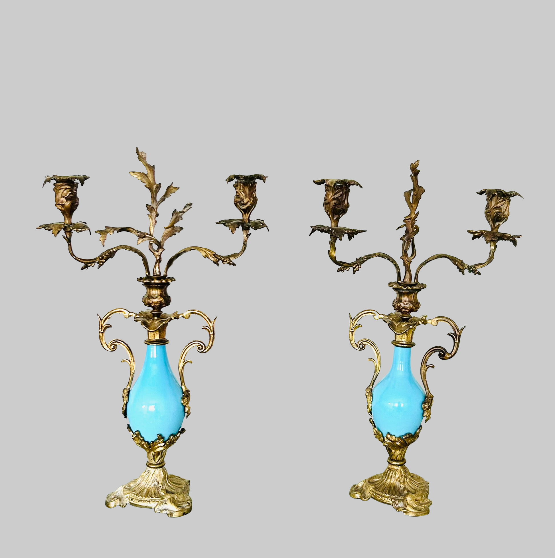 Thomas Abbott Louis XV Stil vergoldeter türkisfarbener Kandelaber