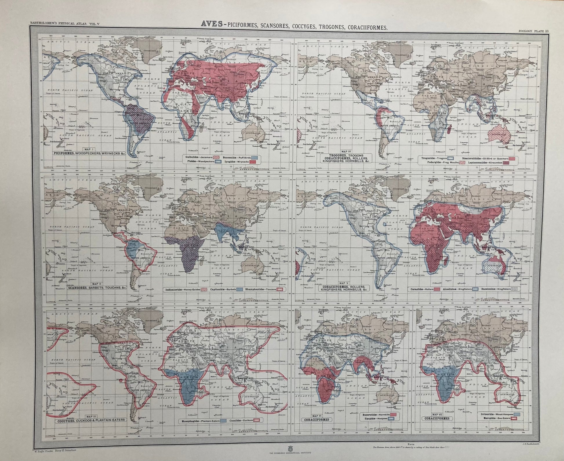 Antique Zoogeography Map - AVES – Vintage Zoology Chart Early 20th Century