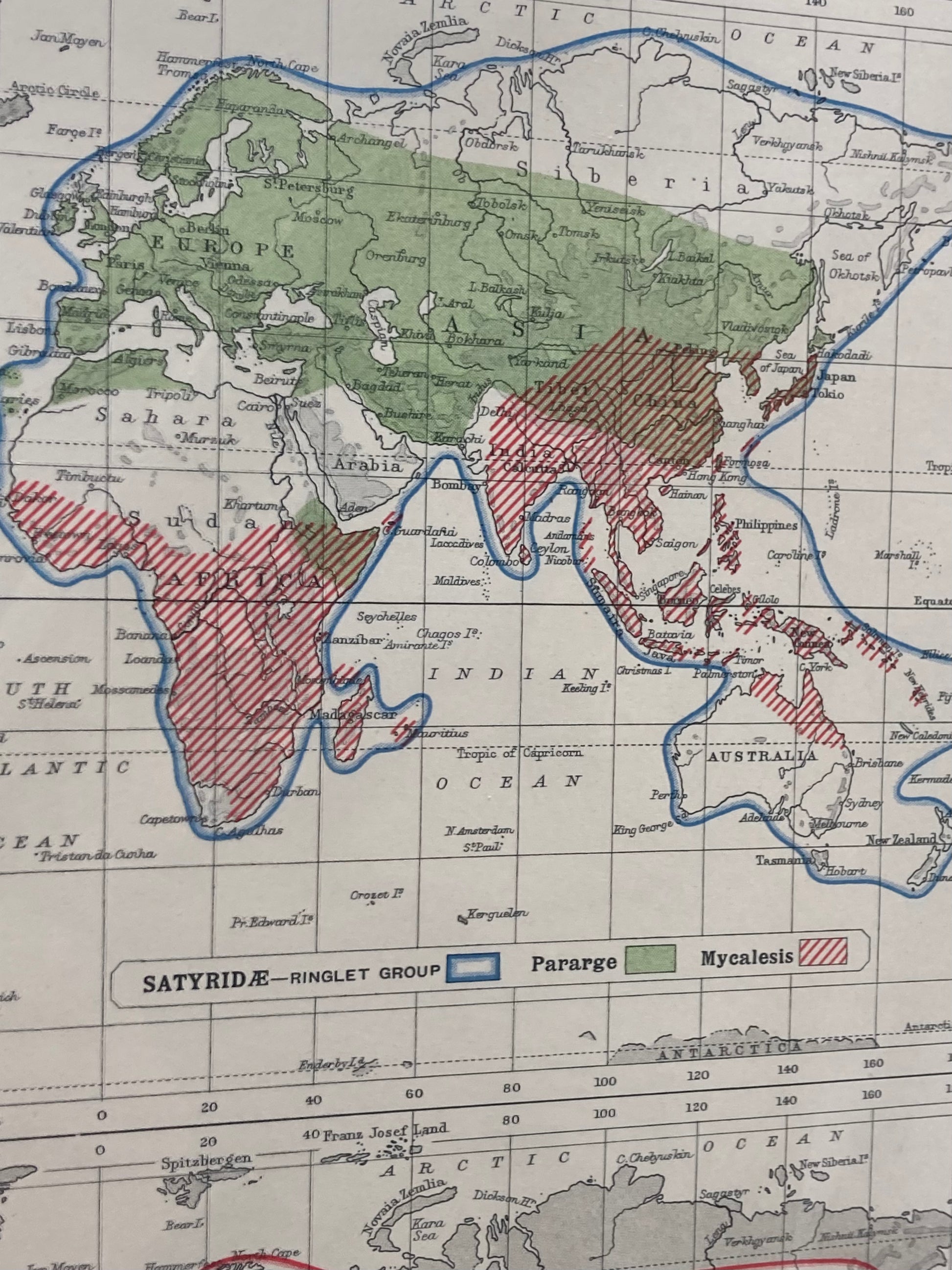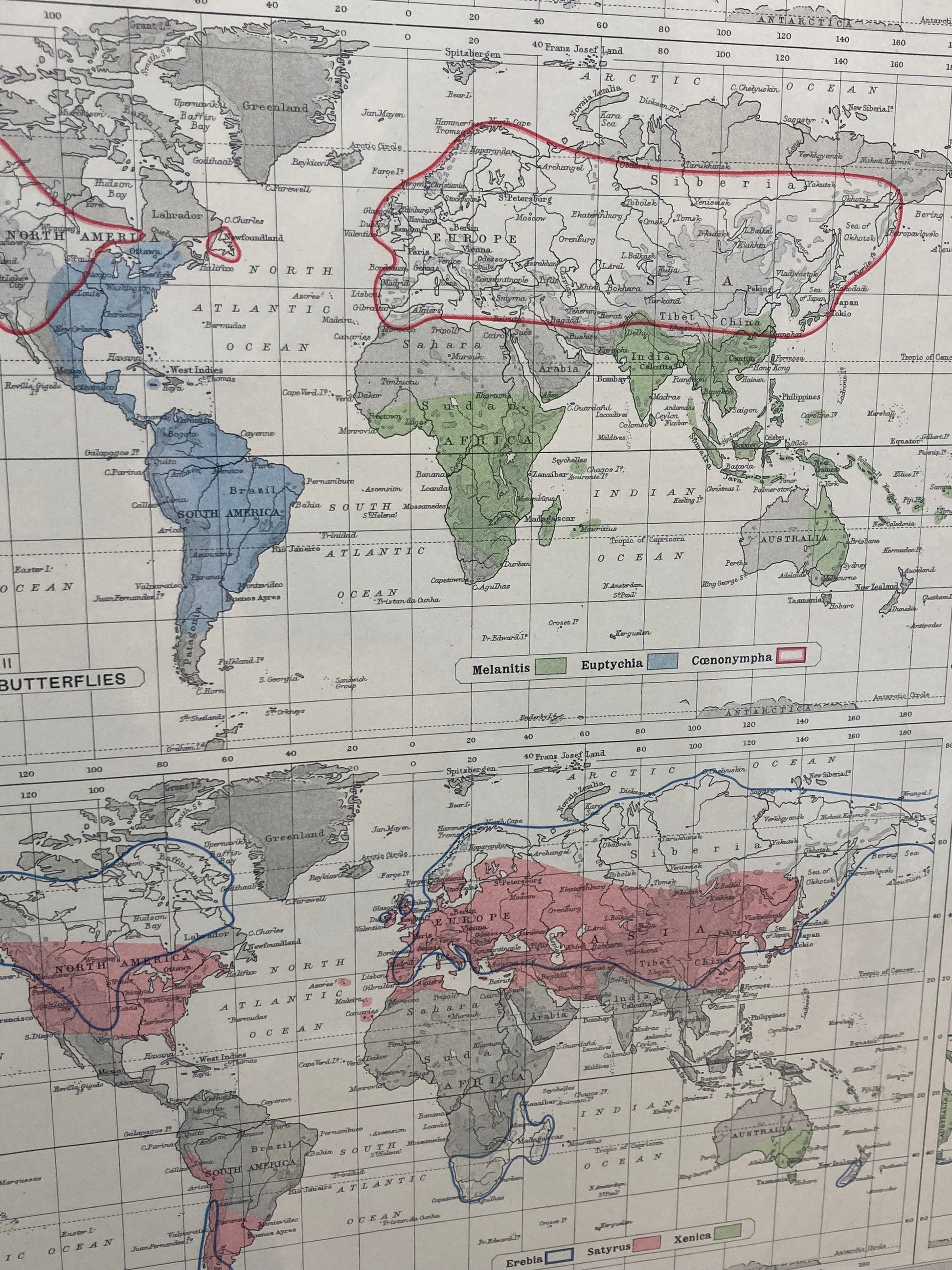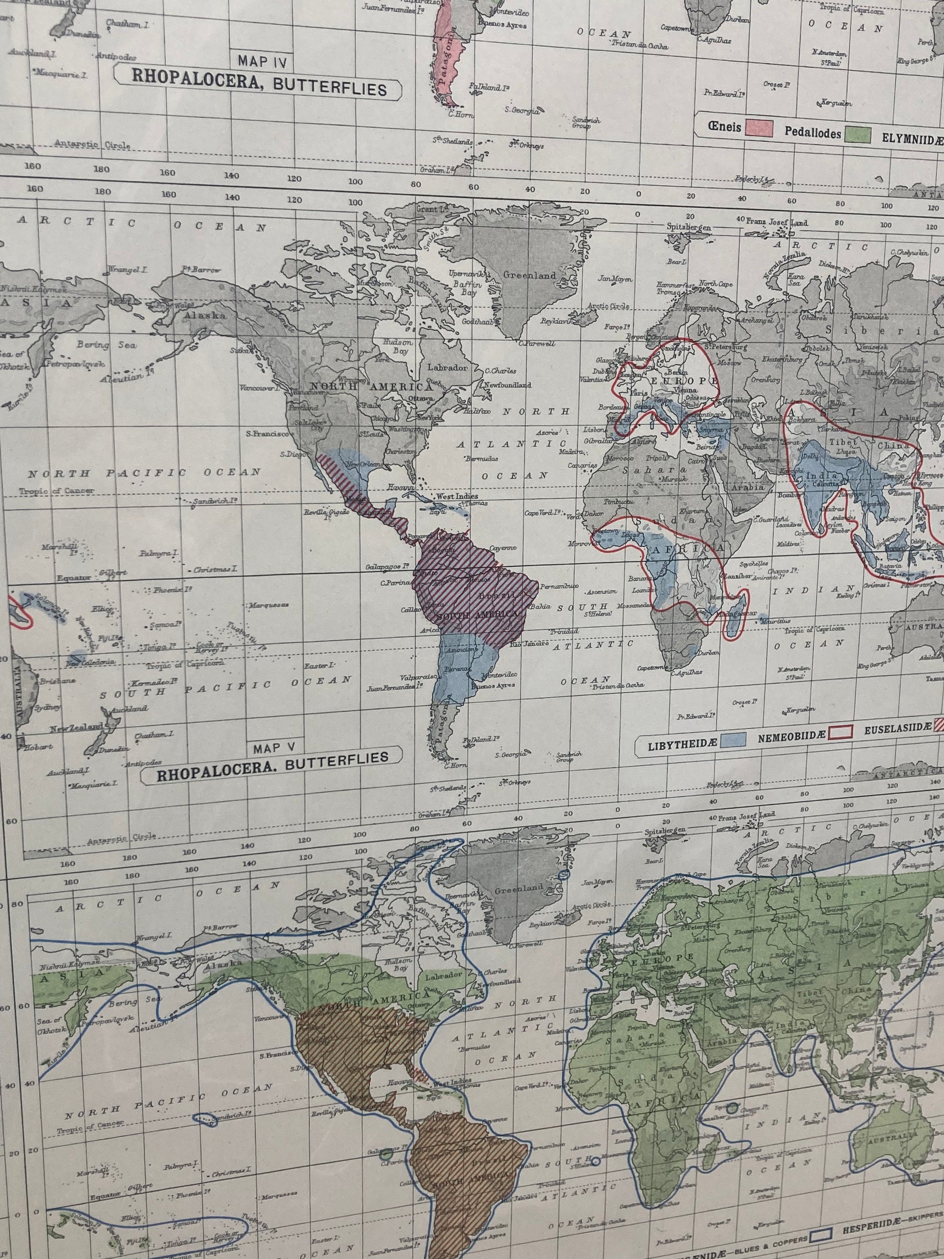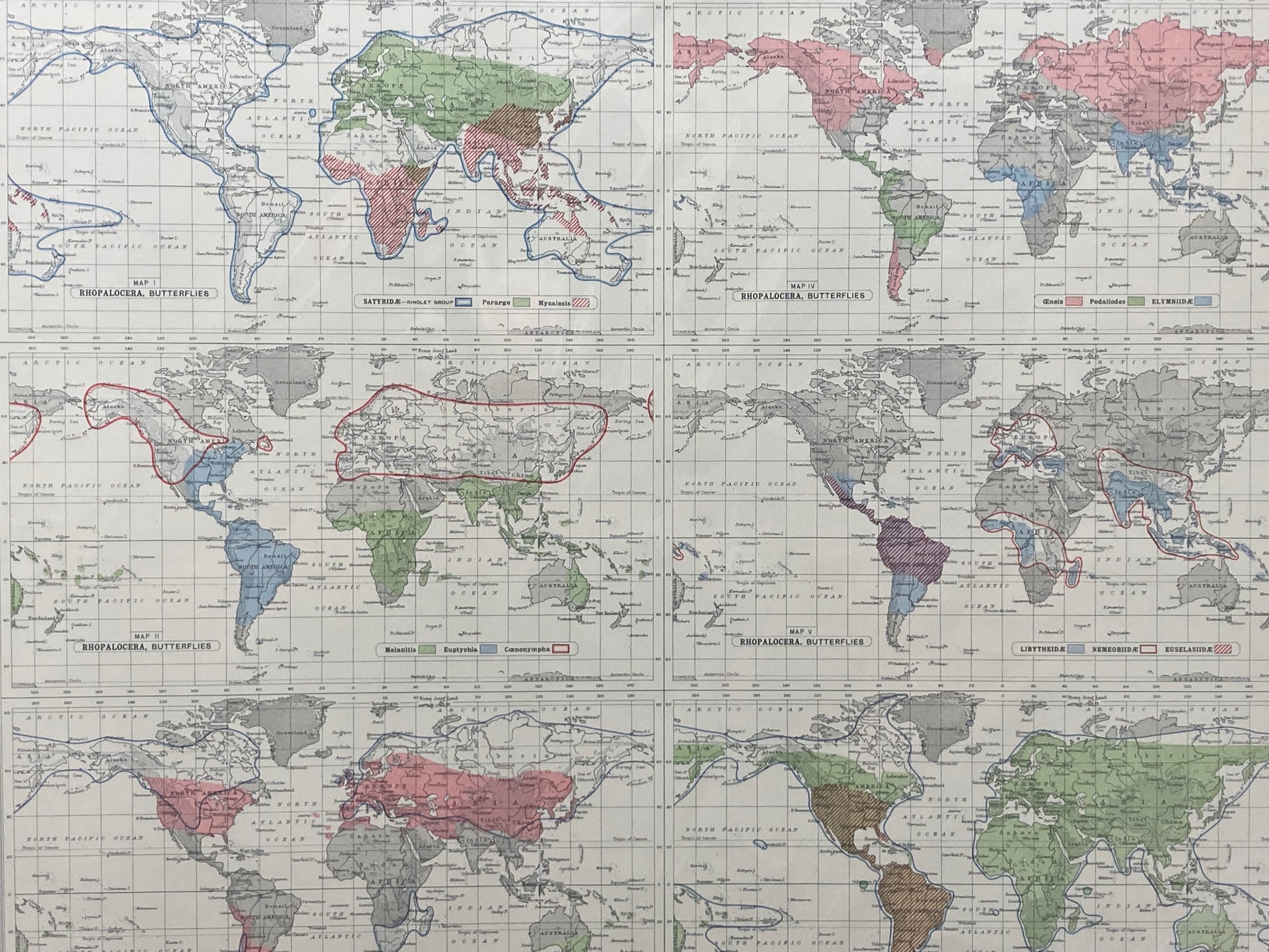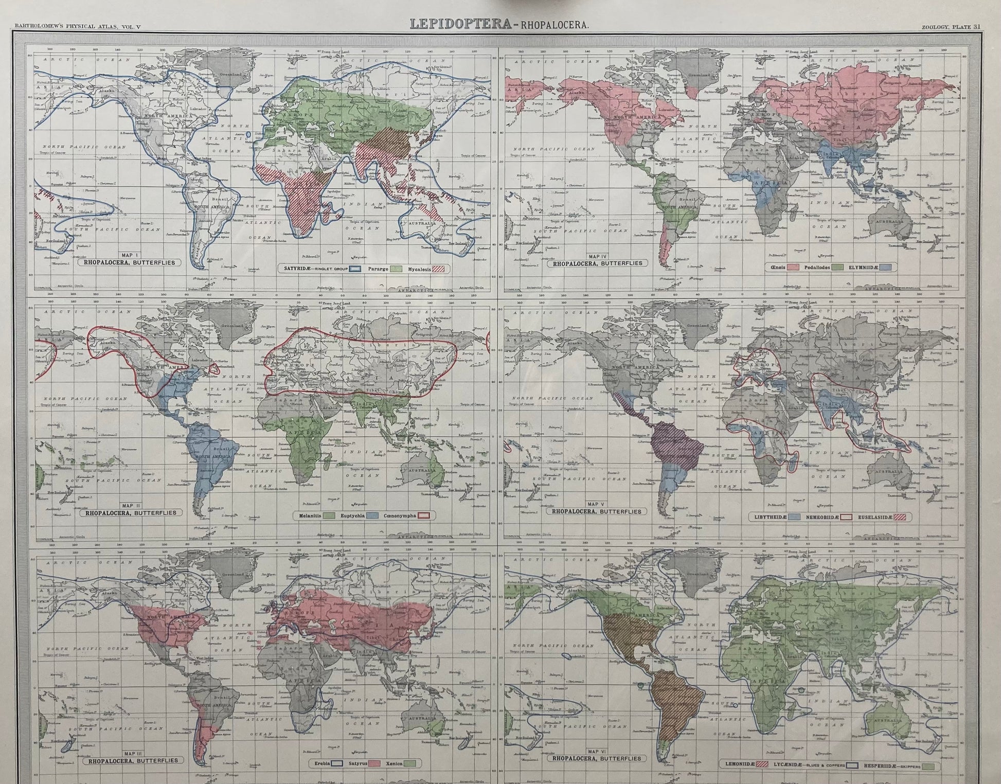 Antique Zoogeography Map - LEPIDOPTERA RHOPALOCERA– Vintage Zoology Chart Early 20th Century