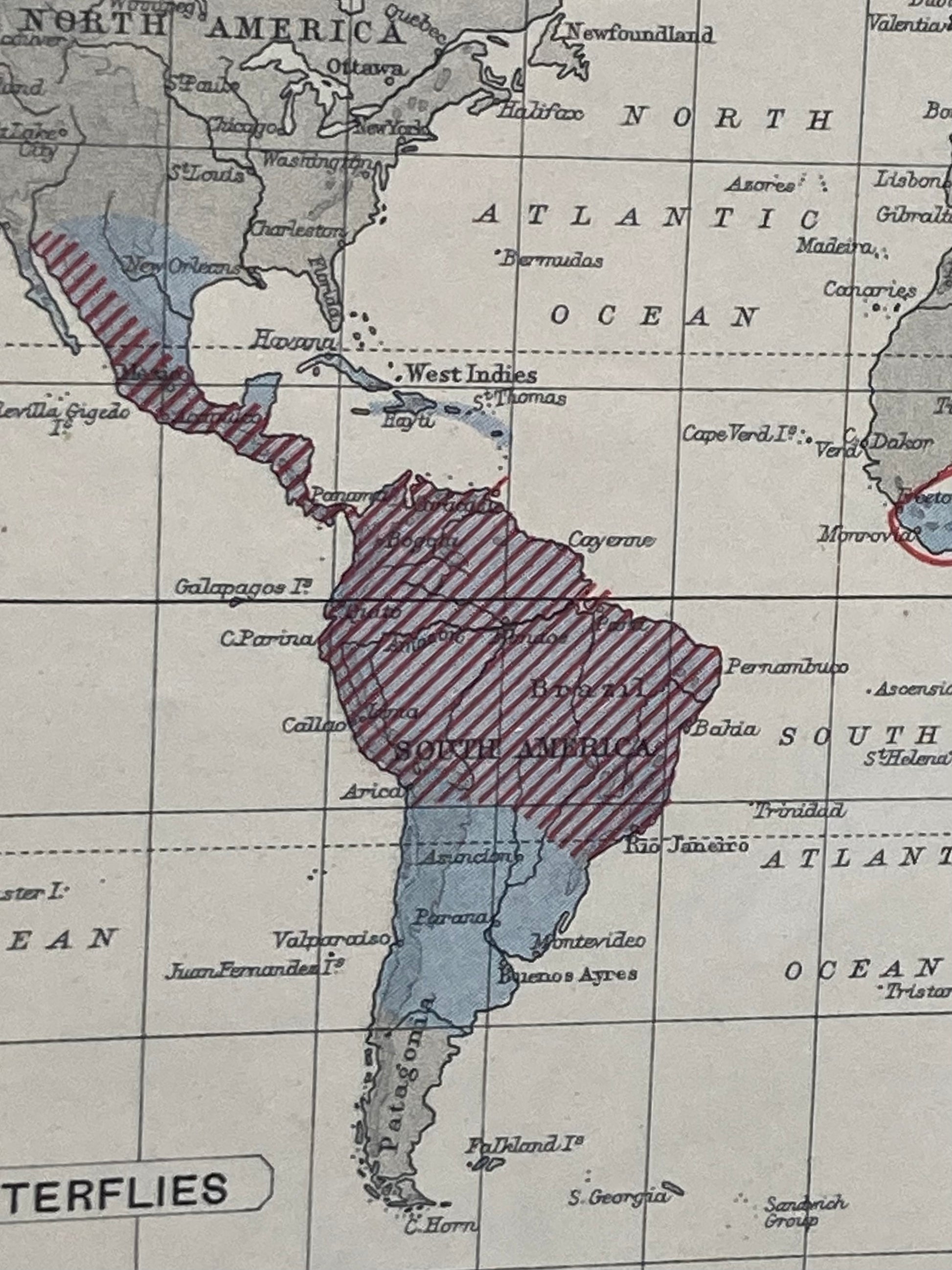 Step back in time with this rare antique zoogeographical map. A beautifully preserved educational chart dating back to the early 20th Century. Ideal for collectors, historians, and students, this vintage map showcasing distribution of butterflies throughout the continents.