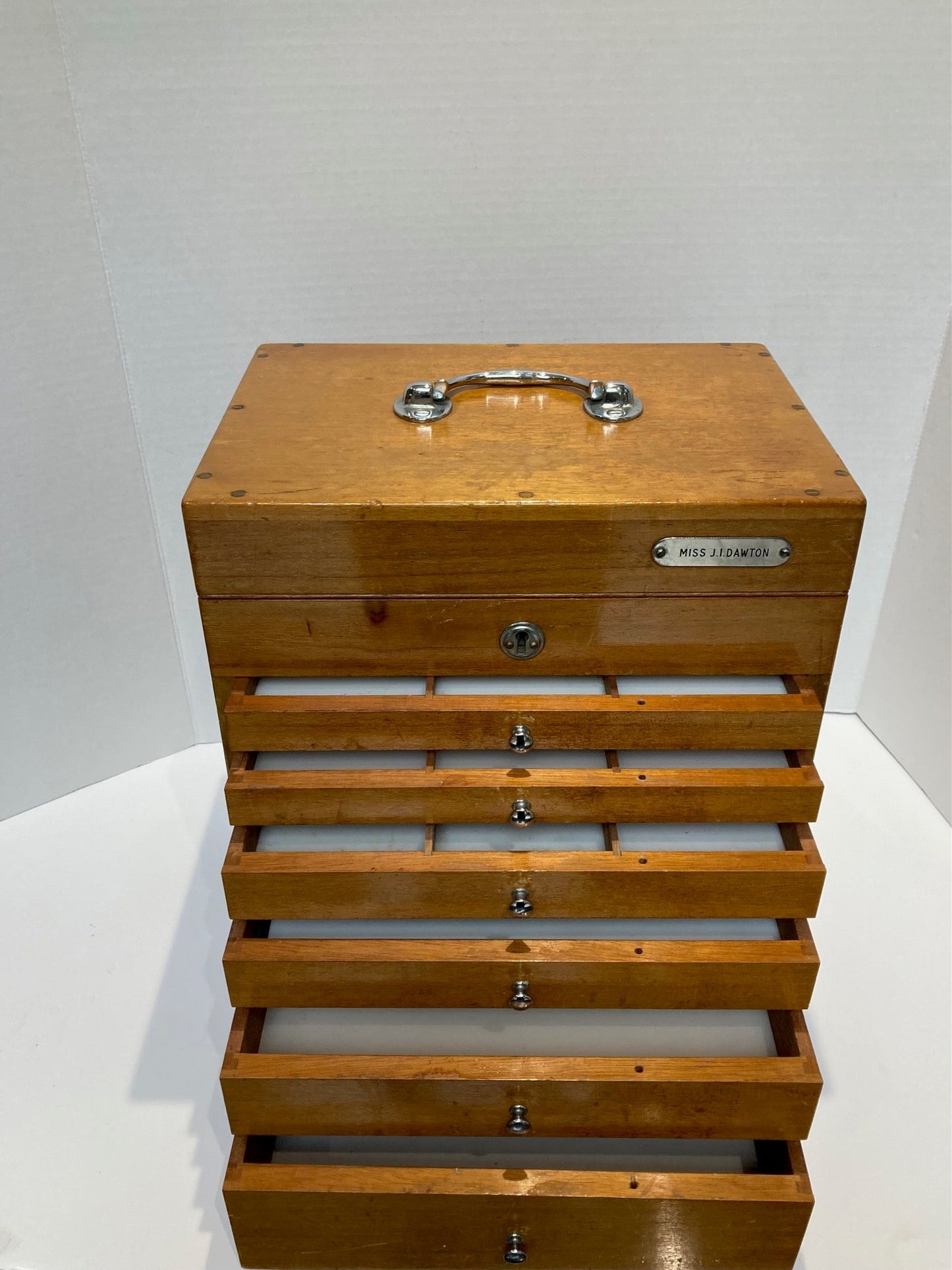 Sold - Designed for the storage and transportation of dental equipment the functional design of this cabinet is perfect for storing coins or other small items.