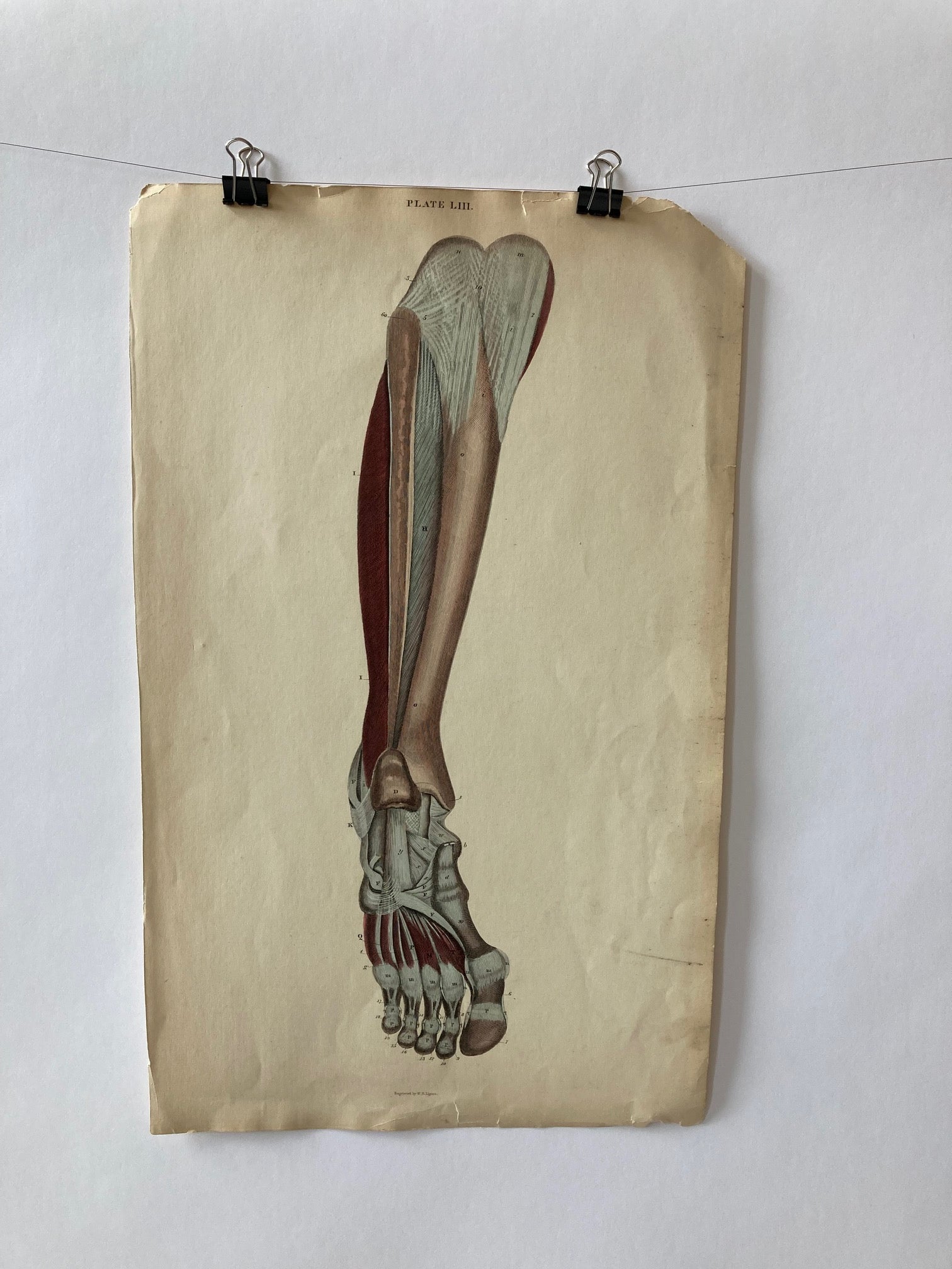 Lizars Anatomical Drawing 19th century original - human anatomy - leg/foot - plate LIII