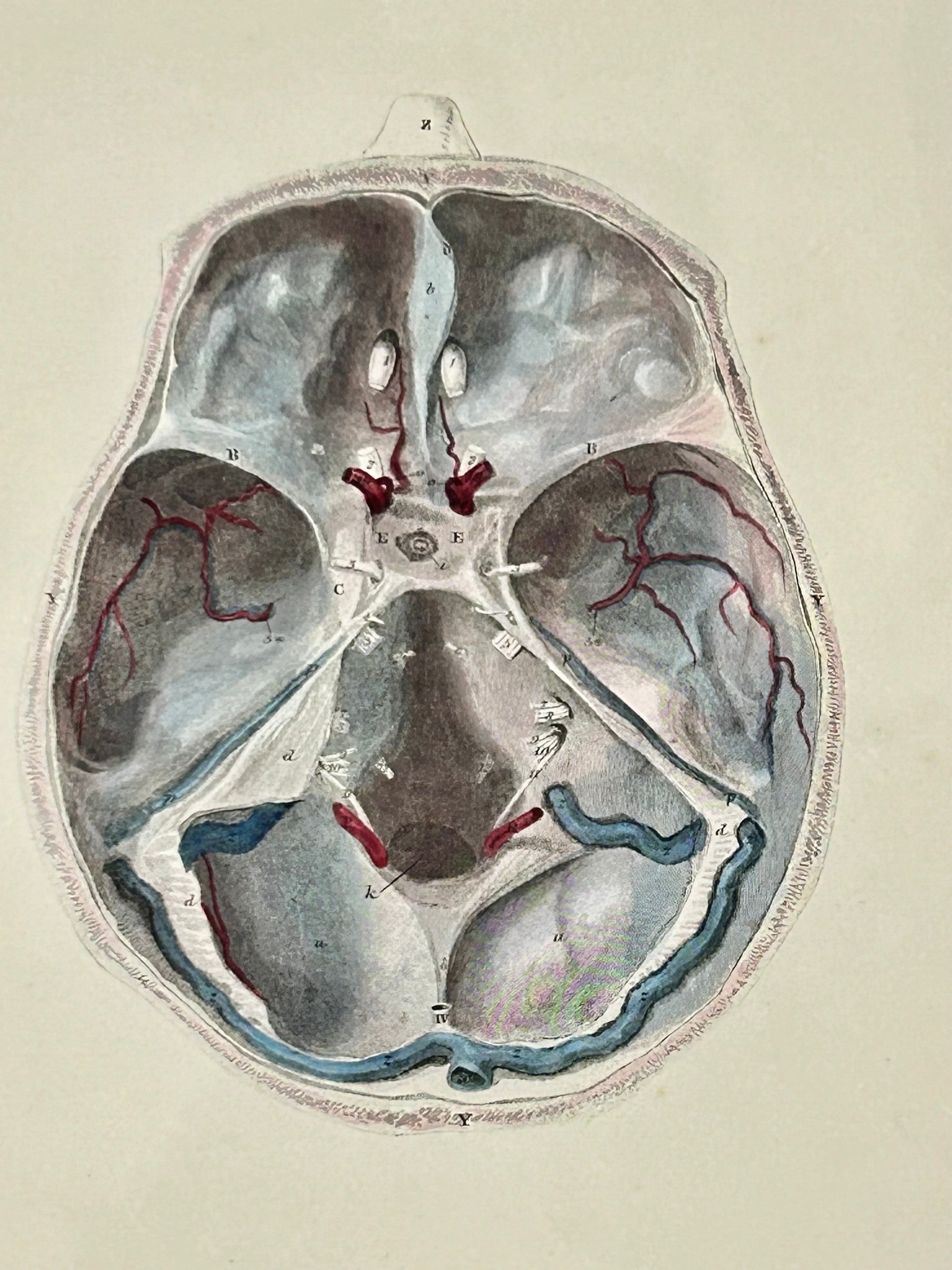 Lizars Anatomical Illustration The Brain Cranial - 19th Century Original Drawing Plate LXV