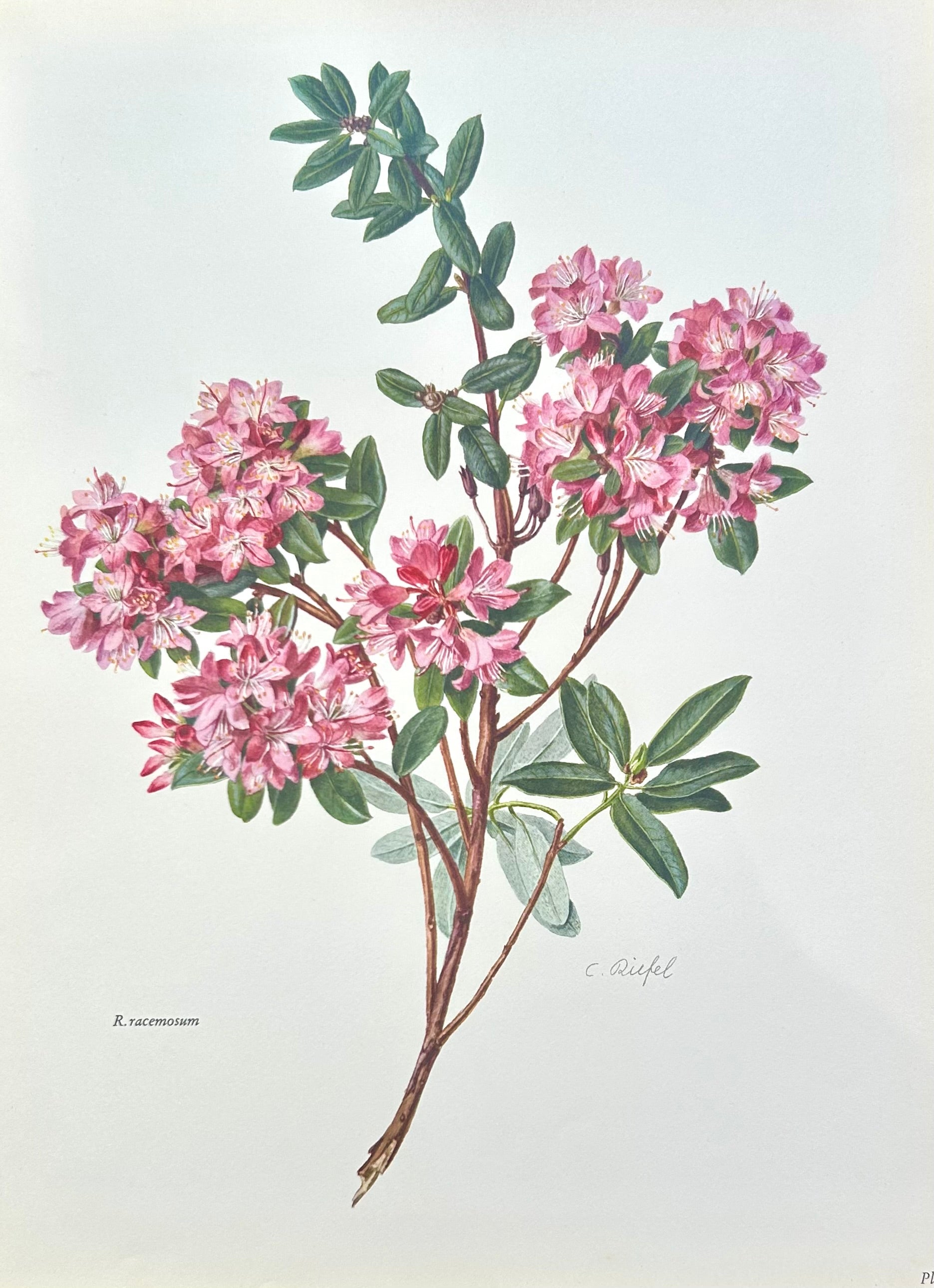Rhododendron Vintage Print | C. Riefel 1958 Floral - R Racemosum Pink